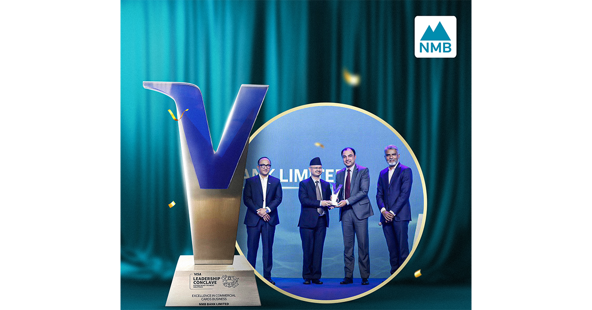 एनएमबीलाई भिसा इन्टरनेसनलले हालै आयोजना गरेको लिडरसिप कन्क्लेभ नेपाल २०२५ सम्मेलनमा एक्सिलेन्स इन कमर्सियल कार्डस् बिजनेस अवार्ड दिएको हो ।