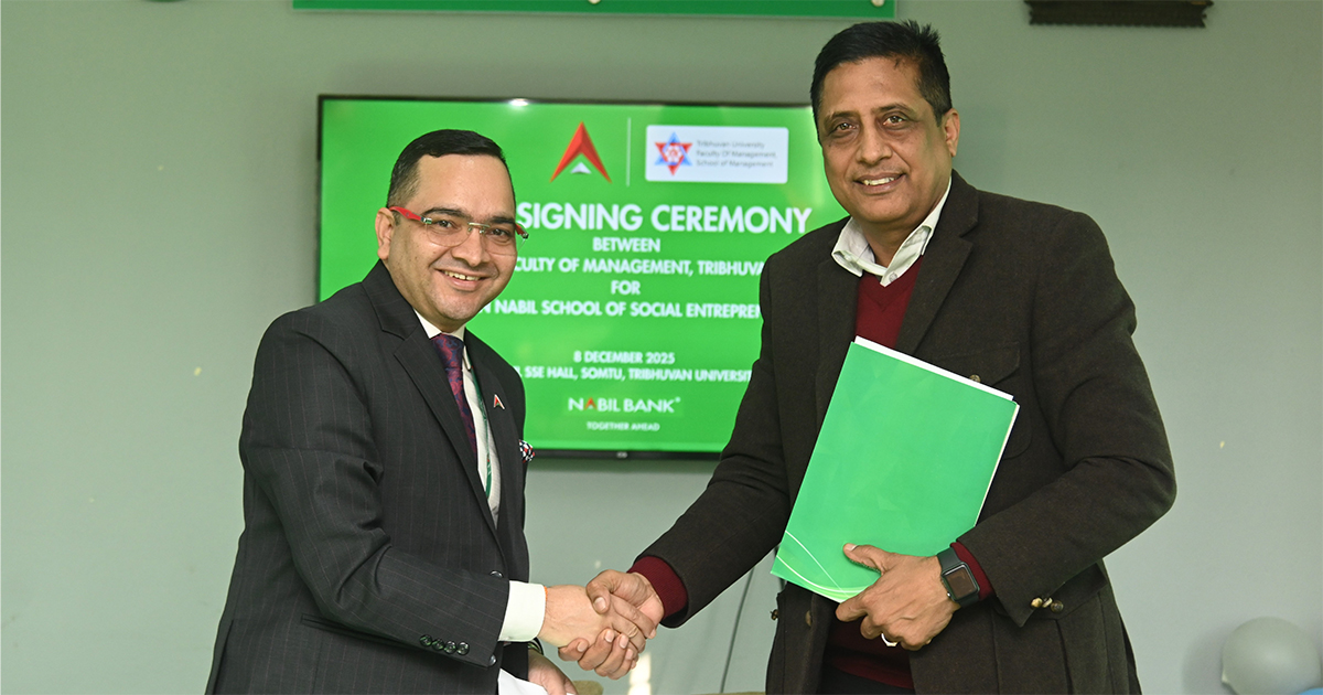 काठमाडौं । नबिल बैंक र त्रिभुवन विश्वविद्यालय, व्यवस्थापन संकायबीच ‘नबिल एसएसई’ कार्यक्रम सञ्चालनका लागि नवीकरण सम्झौता भएको छ । व्यवस्थापन संकायको कार्यलयमा भएको नवीकरण सम्झौतामा नबिल बैंकका प्रमुख कार्यकारी अधिकृत (सीईओ) मनोजकुमार ज्ञवाली र त्रिवि व्यवस्थापन संकायका डिन प्रा. डा. महानन्द चालिसेले हस्ताक्षर गरेका हुन् । यस सम्झौतापछि त्रिविसँगको यस कार्यक्रम सन् २०२८ सम्म निरन्तर रुपमा सञ्चालन हुनेछ ।