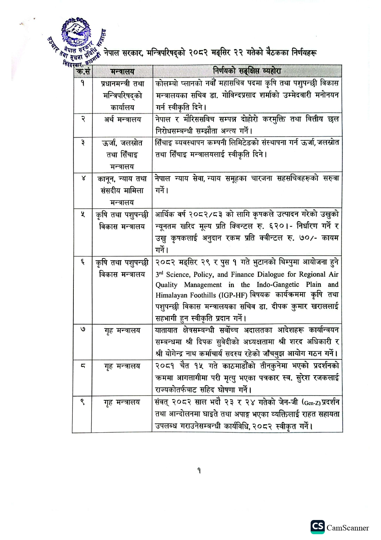 त्यस्तै बैठकले नेपाल र मौरिससबीच सम्पन्न दोहोरो करमुक्ति तथा वित्तीय छल निरोधसम्बन्धी सम्झौता अन्त्य गर्नेसहितका १८ निर्णय गरेको छ ।