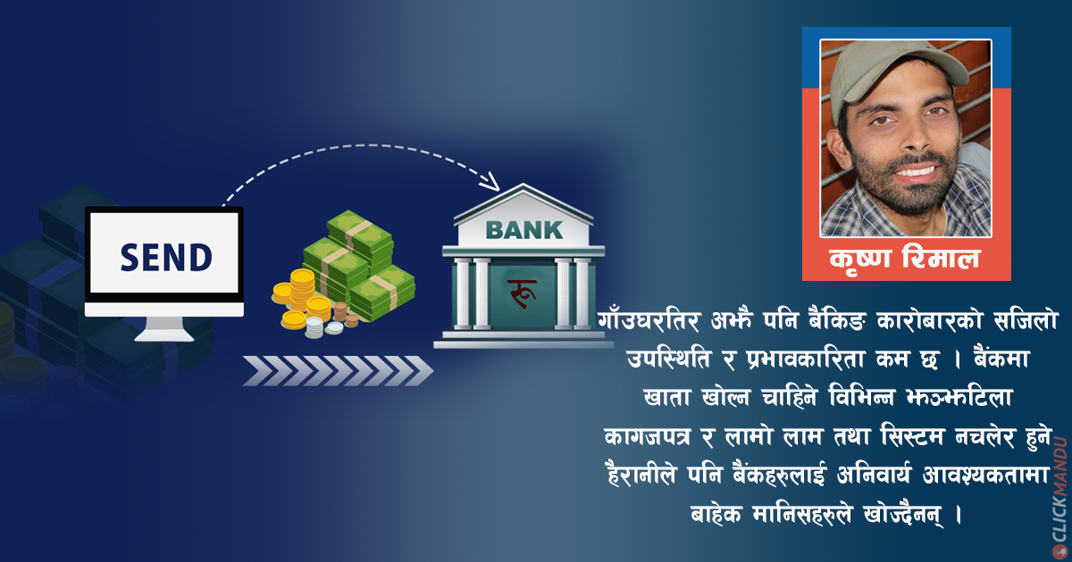 गाँउघरतिर अझै पनि बैंकिङ कारोबारको सजिलो उपस्थिति र प्रभावकारिता कम छ । बैंकमा खाता खोल्न चाहिने विभिन्न झञ्झटिला कागजपत्र र लामो लाम तथा सिस्टम नचलेर हुने हैरानीले पनि बैंकहरुलाई अनिवार्य आवश्यकतामा बाहेक मानिसहरुले खोज्दैनन् । वित्तीय साक्षरता निकै कमजोर छ । प्राविधिक विनिमय प्रणालीहरु सुरक्षित छैनन् ।