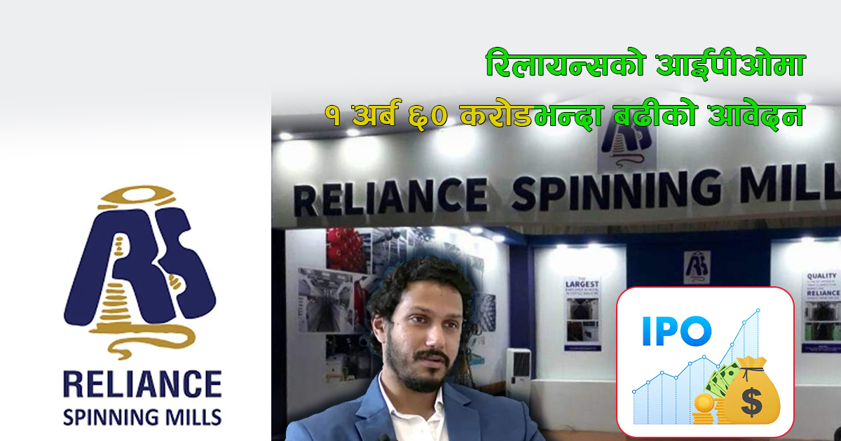 काठमाडौं । रिलायन्स स्पिनिङ मिल्सको आईपीओमा मागभन्दा करिब १७ गुणा बढीको आवेदन परेको छ । पहिलो चरणमा वैदेशिक रोजगारीमा रहेका नेपालीहरुको लागि जारी गरिएको आईपीओमा १६.९ गुणा बढी आवेदन परेको हो ।