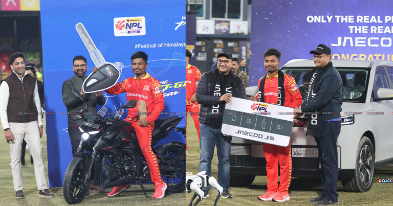 काठमाडौं । दोस्रो सिजनको नेपाल प्रिमियर लिग (एनपीएल) टी–ट्वान्टी क्रिकेट प्रतियोगिताको सर्वोत्कृष्ट नेपाली खेलाडी बन्दै लुम्बिनी लायन्सका कप्तान रोहित पौडेलले कार पुरस्कार पाए । शनिबार राति सम्पन्न फाइनल खेलमा लुम्बिनीले सुदूरपश्चिम रोयल्सलाई पराजित गरेको थियो । पहिलो पटक लुम्बिनीले उपाधि जित्दा नेपाली राष्ट्रिय क्रिकेट टिमका कप्तानसमेत रहेका रोहित उत्कृष्ट खेलाडी बने । साथै रोहित नै … Continue reading रोहितले जितेका कार र बाइकको साढे १६ लाख रुपैयाँ कर तिर्नुपर्ने