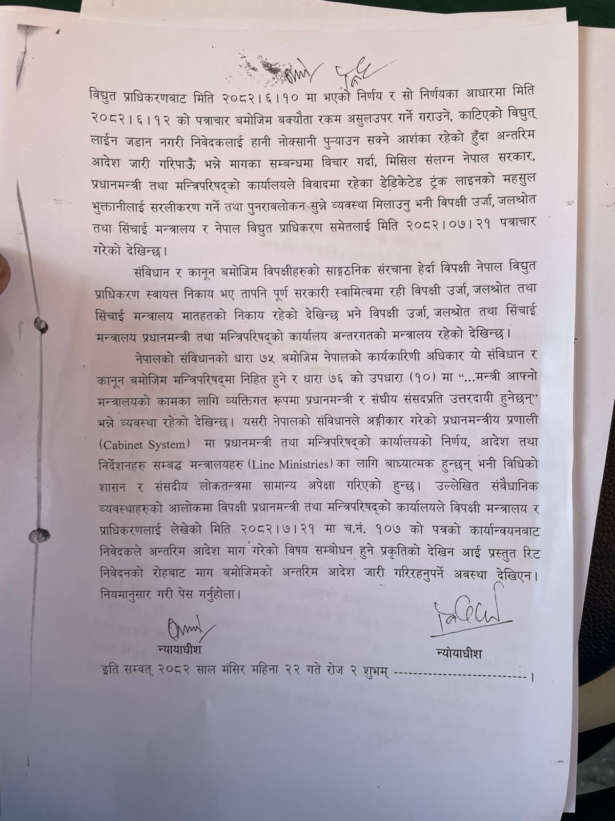 प्राधिकरण नेतृत्वले मन्त्रिपरिषद् र प्रधानमन्त्रीको कार्यालयको निर्देशनलाई बेवास्ता गर्दै लाइन काट्ने र बक्यौता उठाउन दबाब दिइरहेको अवस्थामा सर्वोच्चको यो व्याख्या महत्त्वपूर्ण मानिएको छ ।