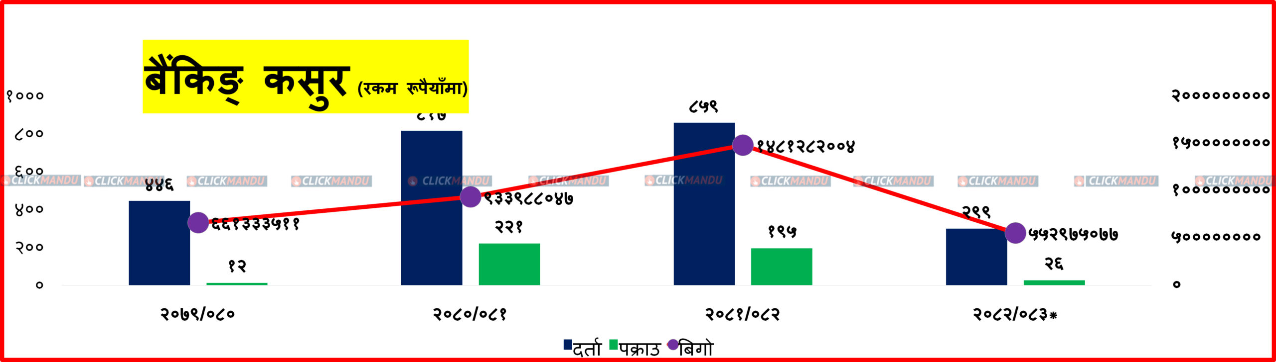 | बैंकिङ् कसुर | ४४६ | १२ | ६६१३३३५११ |