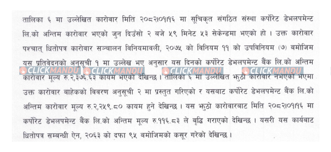 यसरी कारोबार गरेर कर्पोरेट डेभलपमेन्ट बैंकको अन्तिम सेयर मूल्य ११६ रूपैयाँ ८३ पैसाले बढाएको अनुसन्धानको निष्कर्ष छ ।
