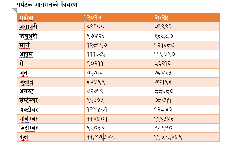 सन् २०२५ मा नेपाल आएका पर्यटक सबैभदा बढी मार्चमा आएका छन् ।