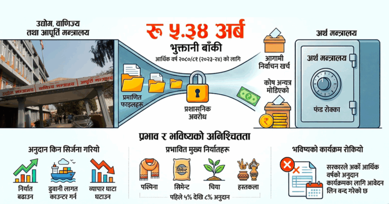 उद्योग मन्त्रालयको बदमासी: उद्योगीले सरकारबाट पाएनन् निर्यातमा अनुदानको साढे ५ अर्ब