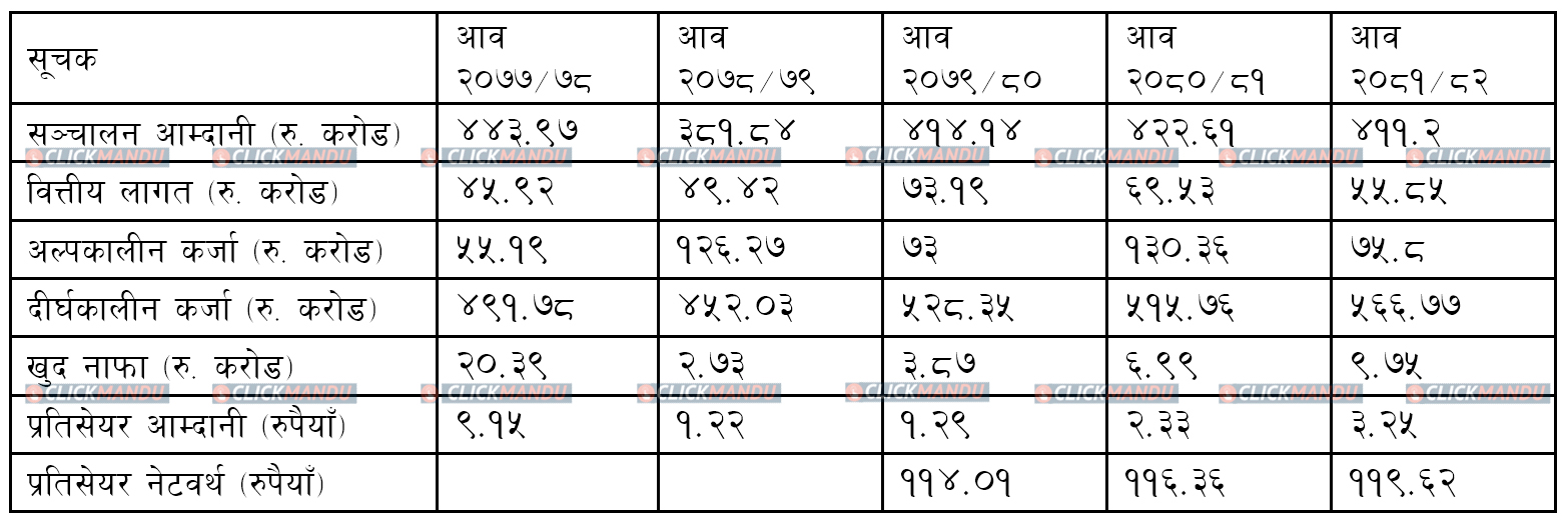 यस्तो छ कम्पनीको प्रमुख वित्तीय सूचकः