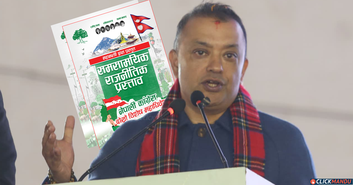 सोमबार भृकुटीमण्डपमा जारी विशेष महाधिवेशनको बन्दसत्रमा महामन्त्री थापाले पेस गरेको समसामयिक राजनीतिक प्रस्तावमा अर्थतन्त्रका संरचनागत समस्या, जनसांख्यिक लाभको अवसर र भावी आर्थिक मार्गचित्रलाई प्राथमिकताका साथ समेटेका छन् ।
