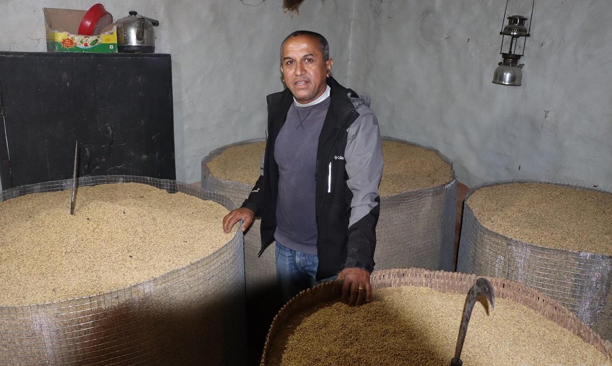 ‘एक सय रोपनी खेतमा एक सय ५० मुरी धान फलाउने लक्ष्य थियो’, उनले भने, ‘गत वर्षको तुलनामा २० मुरी बढी धान उत्पादन भए पनि मौसमले साथ नदिँदा लक्ष्यभन्दा कम भयो ।’