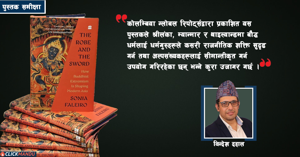 काठमाडौं । बौद्ध धर्मको प्रमुख विशेषता भनेकै त्याग र वैराग्य हो । सम्पूर्ण प्राणीमाथि करुणा राख्ने शिक्षा यसले दिन्छ । तर, कतिपय बौद्ध धर्मावलम्बी मुलुकहरूमा अहिले यो उग्रराष्ट्रवादको माध्यम बन्दै गएको दाबी गर्दै सोनिया फालेरोले सन् २०२५ मा ‘द रोब एन्ड द सोर्डः हाउ बुद्धिस्ट एक्सट्रिमिजम इज शेपिङ मोडर्न एसिया’ शीर्षकको पुस्तक प्रकाशन गरेकी छन् ।