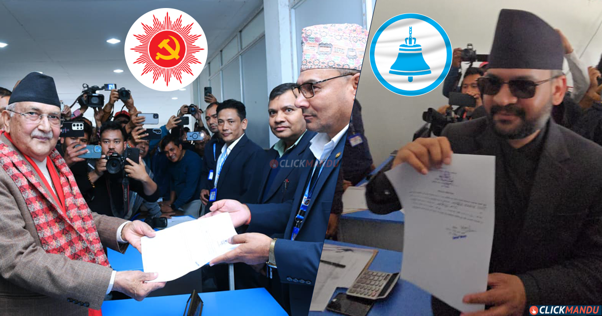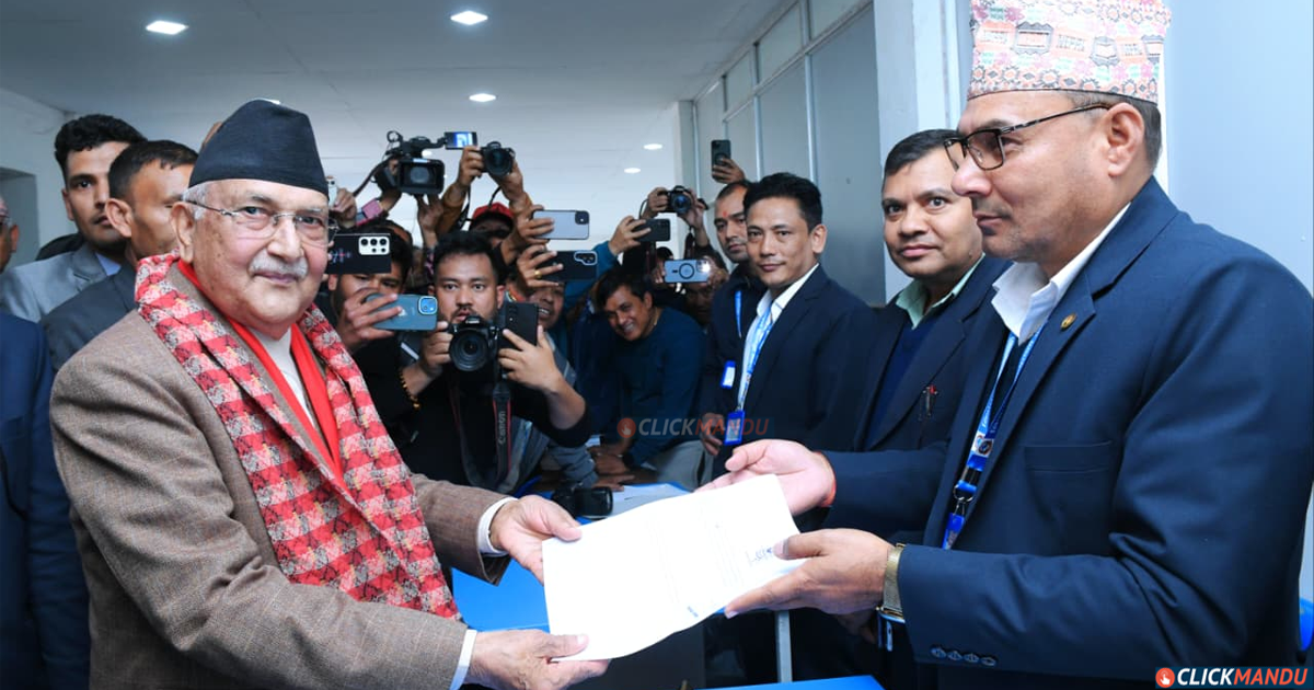 एमालेका ‘बा’ ओली र बालेन दुवैले फागुन २१ गते हुने प्रतिनिधि सभा निर्वाचनका लागि आज झापा क्षेत्र नं ५ बाट उम्मेदवारी दर्ता गरेका छन् ।