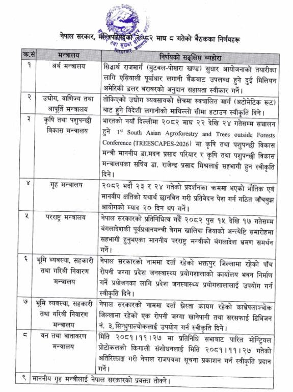 यस्ता छन्, मन्त्रिपरिषद वैठकका ९ निर्णयहरु