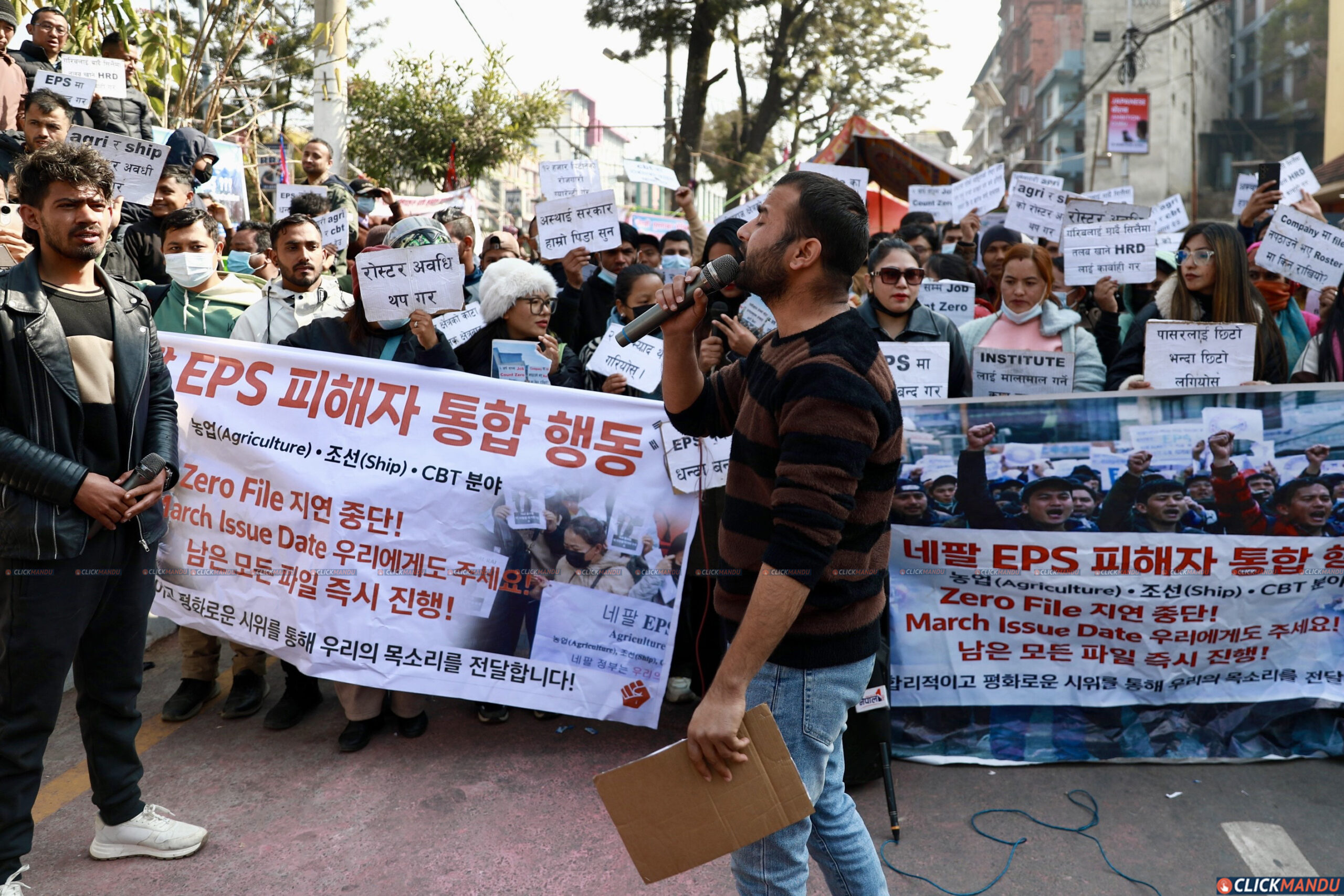 काठमाडौं । रोजगार अनुमति प्रणाली (इपीएस) अन्तर्गत भाषा तथा सीप परीक्षा उत्तीर्ण गरे पनि लामो समयदेखि दक्षिण कोरिया जान नपाएको भन्दै युवा–युवतीहरूले प्रदर्शन गरेका छन् ।