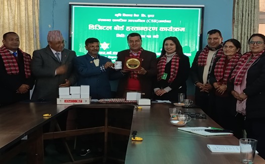 बैंकको संस्थागत सामाजिक उत्तरदायित्व कार्यक्रम अन्तर्गत मिति २०८२ माघ १४ गते बुधबार आयोजित एक कार्यक्रममा बैंकका उपमहाप्रबन्धक प्रताप सुवेदीले व्यवस्थापन केन्द्रीय विभागका प्रमुख भवानी शंकर आचार्यलाई स्मार्ट डिजिटल बोर्ड हस्तान्तरण गरे ।