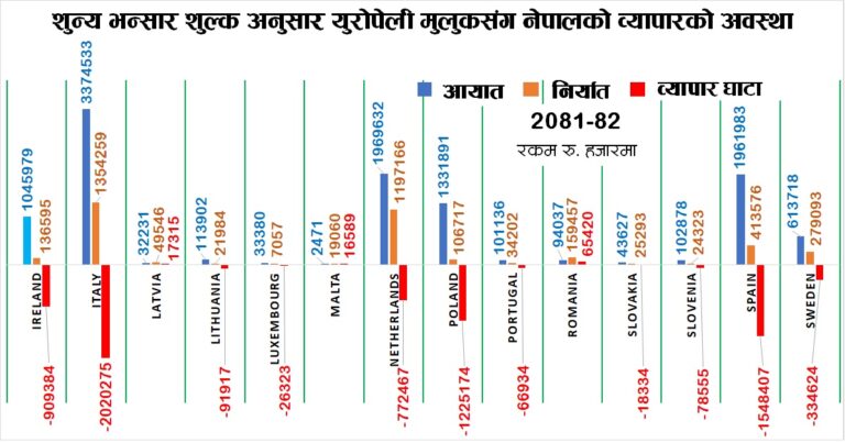 शून्य प्रतिशतको सुविधा हुँदा पनि युरोपेली मुलुकसँग घाटाको व्यापार