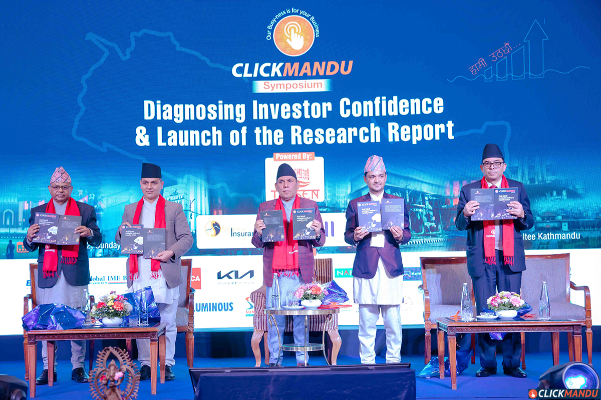 काठमाडौं । क्लिकमान्डु डटकमले ‘जेनजी विद्रोहपछि लगानीकर्ताको आत्मविश्वास र व्यावसायिक वातावरण २०८२’ अध्ययन प्रतिवेदन (क्लिकमान्डु रिसर्च) सार्वजनिक गरेको छ । आइतबार काठमाडौंको सोल्टी होटलमा आयोजित एक कार्यक्रमका बीच राष्ट्रिय सभा अध्यक्ष नारायण प्रसाद दाहालले क्लिकमान्डु रिसर्च अध्ययन प्रतिवेदन सार्वजनिक गरेका हुन् ।