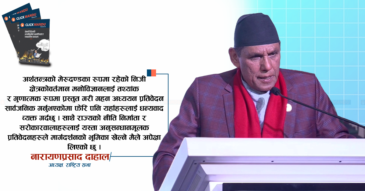 क्लिकमाण्डुकै पहल र अग्रसरतामा जेनजी प्रदर्शनपछि लगानीकर्ताको आत्मविश्वास र व्यावसायिक वातावरणका विषयमा गरिएको अध्ययन प्रतिवेदनले धेरै विषयहरू उजागर गरेको मैले विश्वास लिएको छु।