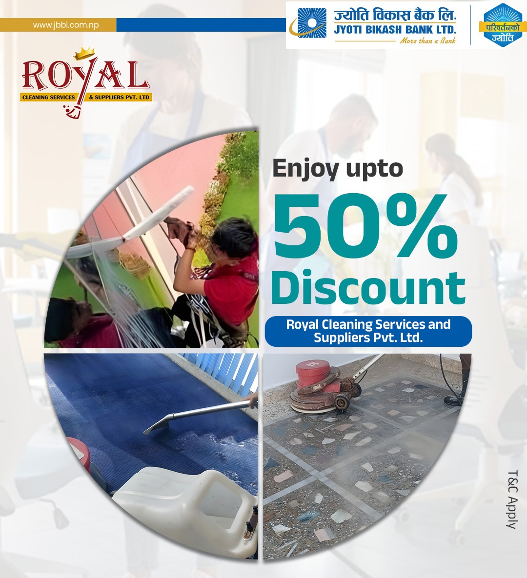 ज्योति विकास बैंकका ग्राहकलाई ‘रोयल क्लिनिङ सर्भिस एन्ड सप्लायर्स’मा विशेष छुट