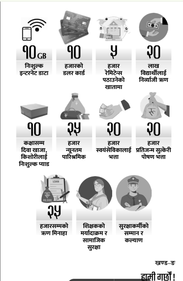एमालेले दिने घोषणा गरेका सुविधाहरु