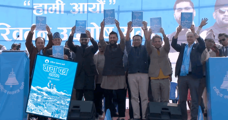 काठमाडौं । राष्ट्रिय स्वतन्त्र पार्टी (रास्वपा) ले आफ्नो ‘वाचापत्र’ मार्फत नेपालको विद्यमान शासकीय स्वरूप र राजनीतिक पद्धतिमा व्यापक हेरफेर गर्ने प्रस्ताव अघि सारेको छ । ‘थिति बसाल्ने संकल्प’ लाई मूल नारा बनाएको रास्वपाले दलीय भागबण्डाको अन्त्य र योग्यतामा आधारित शासन व्यवस्थाको खाका प्रस्तुत गरेको छ ।