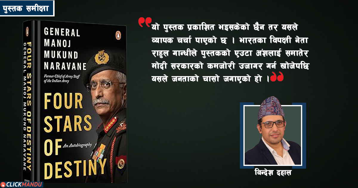 मनोज मुकुन्द नरवणेको ‘फो स्टार्स अफ डेस्टिनी’: सेनाको प्रशस्ति, प्रशासनतन्त्रको आलोचना