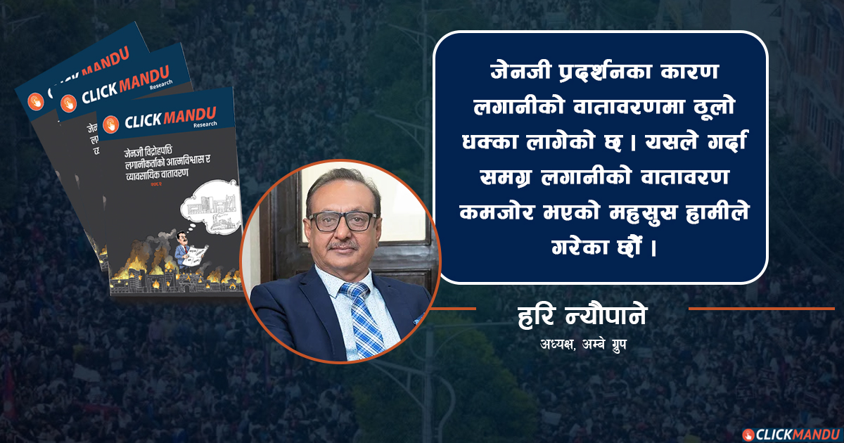 शोभाकर (हरि) न्यौपाने अम्बे ग्रुपका अध्यक्ष हुन् । व्यावसायिक क्षेत्रमा उनको ३ दशकभन्दा लामो अनुभव छ । उनी भदौ २३ र २४ को जेनजी विद्रोहका क्रममा निजी क्षेत्रमाथि भएको आक्रमणले समग्र निजी क्षेत्रको आत्मविश्वासमा ठूलो धक्का पुर्याएको बताउँछन् । जेनजी विद्रोहका कारण व्यवसायीले भोग्नुपरेको आर्थिक तथा भौतिक क्षति र लगानीको खस्कँदो वातावरणबारे न्यौपानेको अनुभव र विश्लेषण यहाँ प्रस्तुत गरिएको छ।