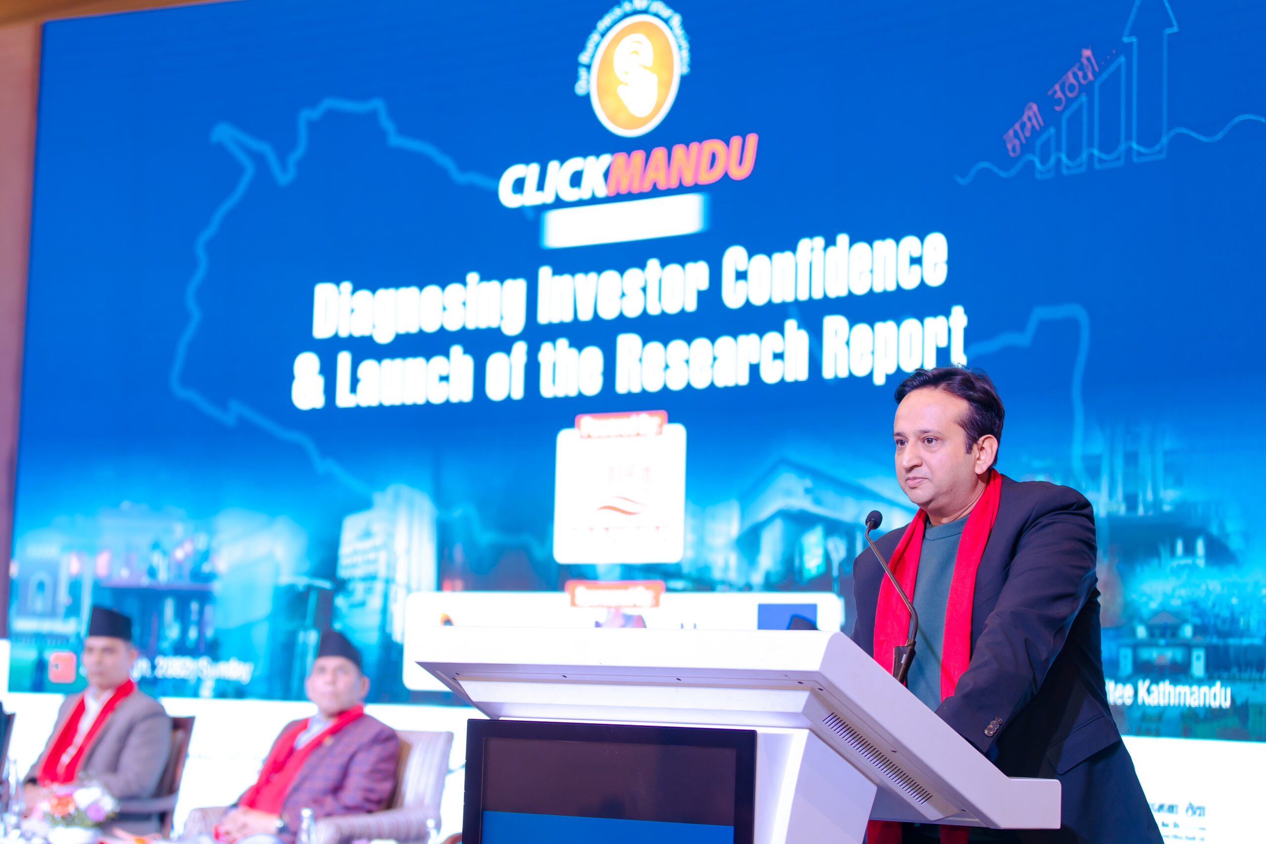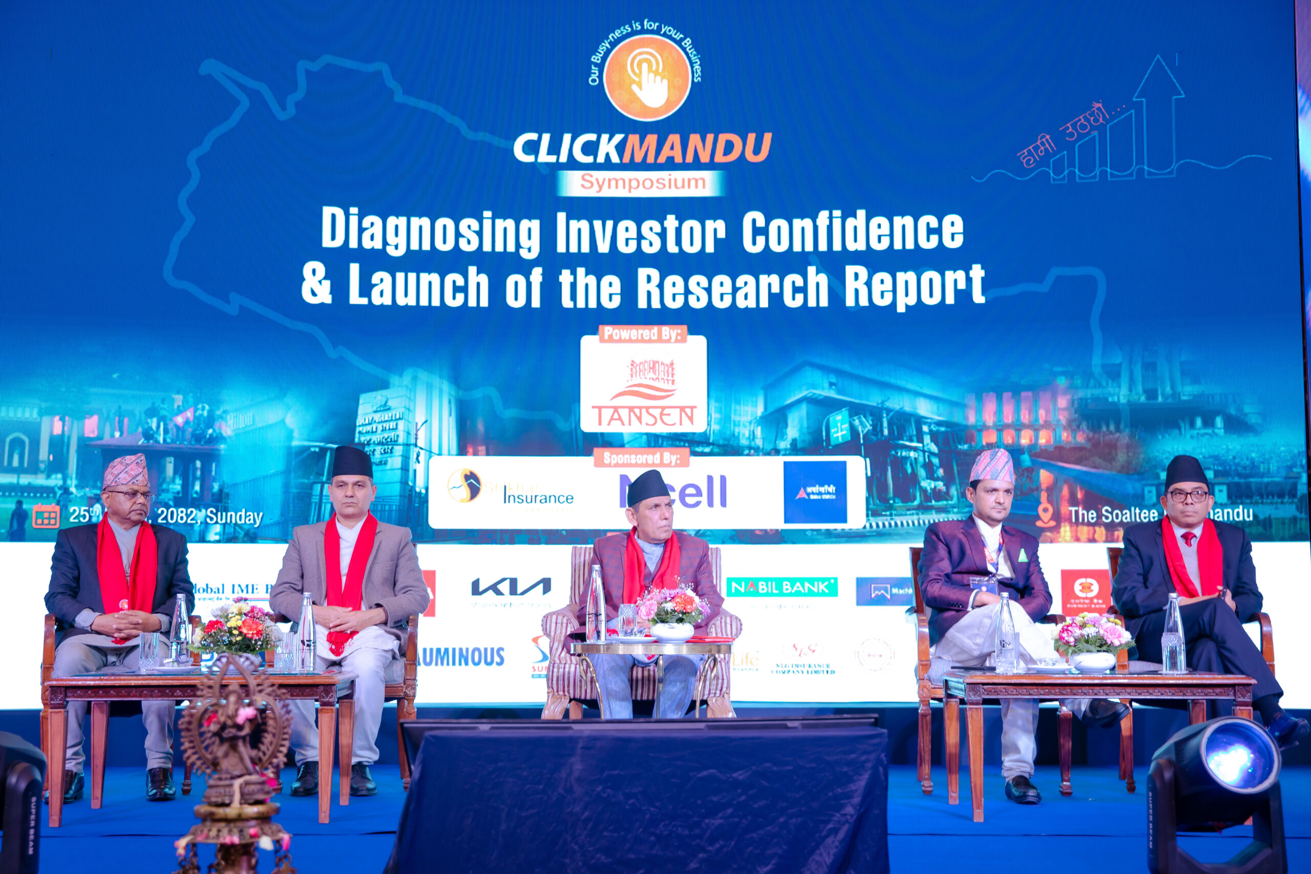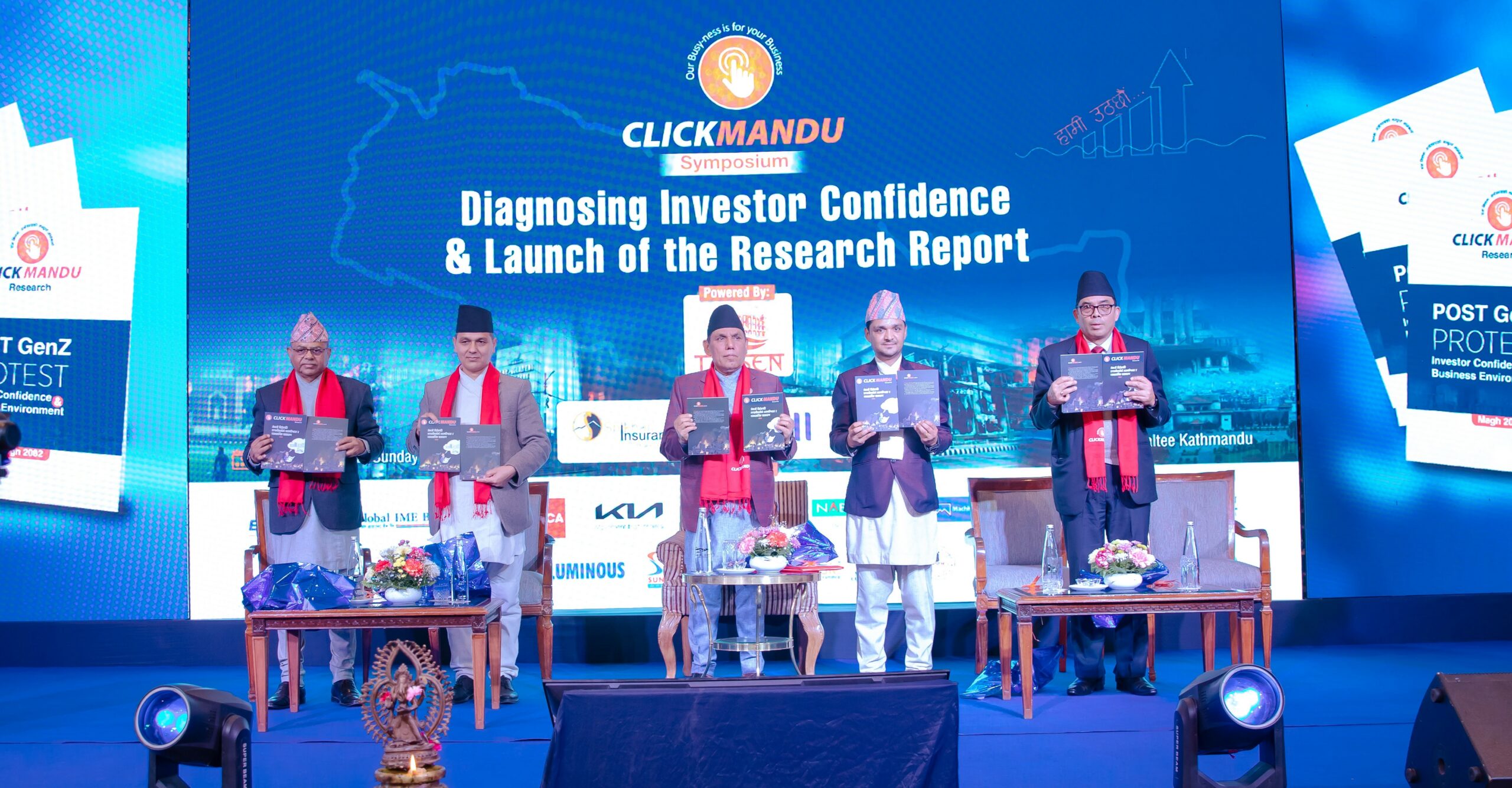 काठमाडौं । क्लिकमान्डु डटकमले मुलुकको पछिल्लो व्यावसायिक वातावरण र लगानीकर्ताको आत्मविश्वासको अवस्थाबारे तयार पारेको एक विशेष अनुसन्धान प्रतिवेदन सार्वजनिक गरेको छ । २०८२ माघ २५ गते राजधानीमा आयोजित ‘क्लिकमान्डु सिम्पोजियम’ मार्फत ‘जेनजी विद्रोहपछि लगानीकर्ताको आत्मविश्वास र व्यावसायिक वातावरण २०८२’ अध्ययन प्रतिवेदन सार्वजनिक गरिएको हो ।