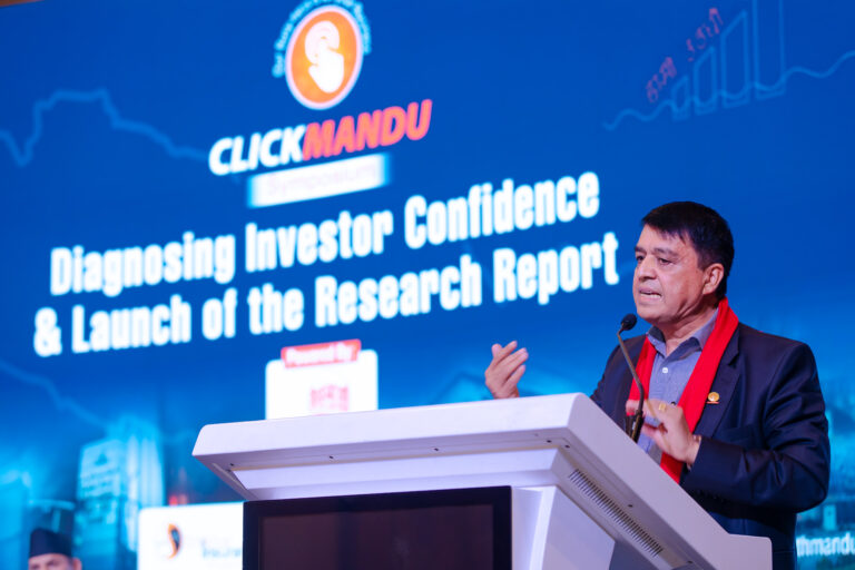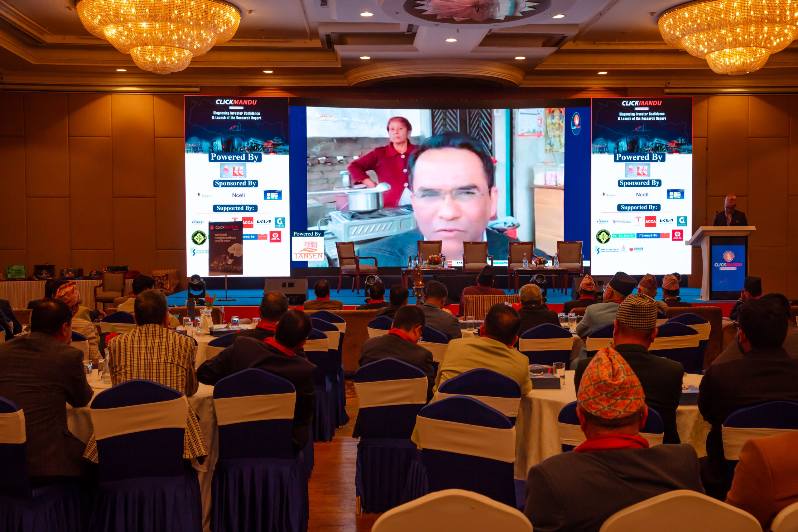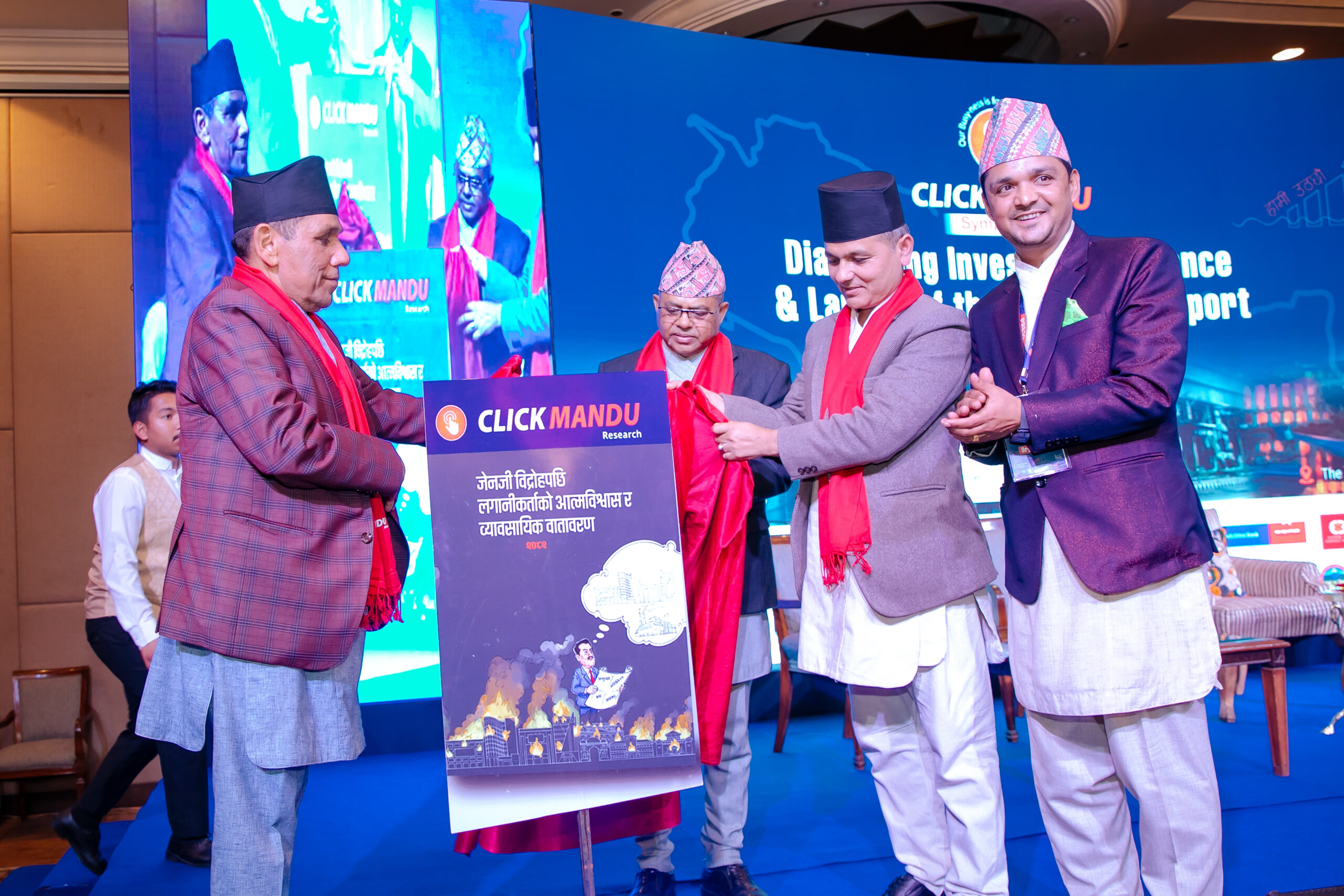 काठमाडौं । क्लिकमान्डु डटकमले मुलुकको पछिल्लो व्यावसायिक वातावरण र लगानीकर्ताको आत्मविश्वासको अवस्थाबारे तयार पारेको एक विशेष अनुसन्धान प्रतिवेदन सार्वजनिक गरेको छ । २०८२ माघ २५ गते राजधानीमा आयोजित ‘क्लिकमान्डु सिम्पोजियम’ मार्फत ‘जेनजी विद्रोहपछि लगानीकर्ताको आत्मविश्वास र व्यावसायिक वातावरण २०८२’ अध्ययन प्रतिवेदन सार्वजनिक गरिएको हो ।