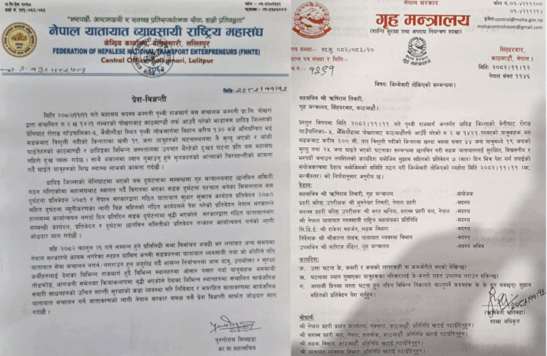 ‘ती प्रतिवेदनले दिएका सुझावलाई कडाइका साथ कार्यान्वयनमा नल्याउँदा दिनप्रतिदिन सडक दुर्घटनामा वृद्धि भएकाले सरकारद्वारा गठित यातायातसँग सम्बन्धित कार्यदल, प्रतिवेदन र दुर्घटना छानबिन समितिको प्रतिवेदन तत्काल कार्यान्वयनका लागि जोडदार माग गर्दछौं,’ विज्ञप्तिमा उल्लेख छ ।