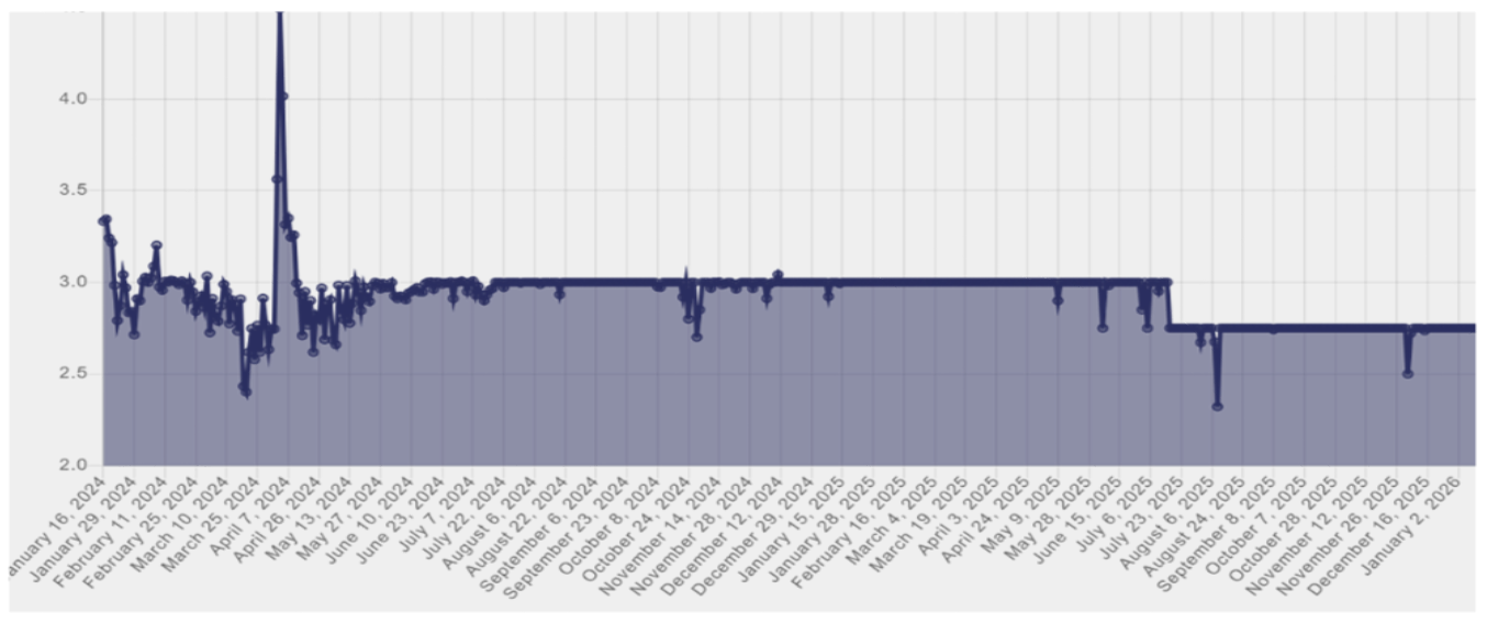 ब्याजदर करिडोरको तल्लो सीमा २.७५% को आडमा थामिएको बैंकिङ प्रणालीको ब्याजदर लामो समयदेखि न्यून बिन्दुमा ‘फ्ल्याट’ भएर बसेको छ ।