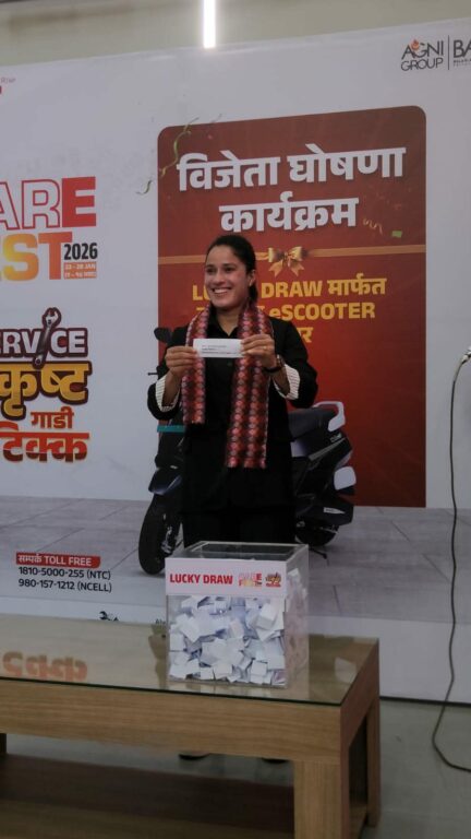 काठमाडौं । नेपालका लागि महिन्द्रा सवारीसाधनको आधिकारिक वितरक अग्नि ग्रुप अन्तर्गतको बालाजु अटो वर्क्स प्रालिले वार्षिक सर्भिस क्याम्प ‘महिन्द्रा केयरफेस्ट २०८२ः सर्भिस उत्कृष्ट, गाडी चिटिक्क’को बम्पर उपहार विजेताको घोषणा गरेको छ । काठमाडौंको बालाजुस्थित महिन्द्राको आधिकारिक सर्भिस सेन्टरमा आयोजित विजेता घोषणा कार्यक्रममा लक्की ड्रमार्फत विजेता छनौट गरिएको हो ।