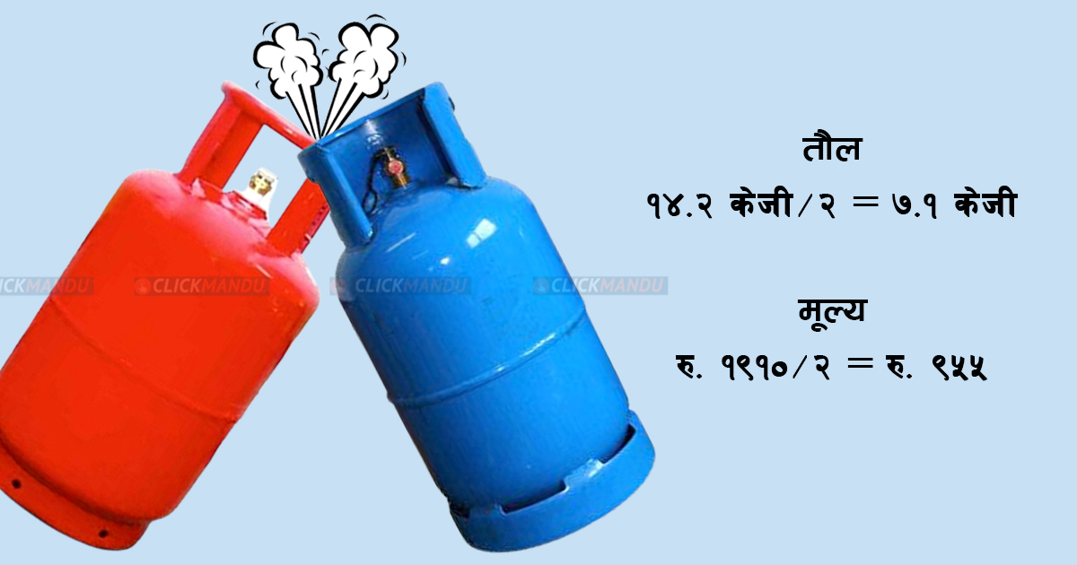 यो निर्णयको आधारमा भोलि(शुक्रबार) वा शनिबारदेखि बोटलिङ्ग तथा रिफिलिङ्ग उद्योगीले सिलिण्डरमा आधि तौल भरेर बजारमा पठाउनेछन् । अहिले पूर्ण तौल(१४.२ किलो) को सिलिण्डरको मूल्य १९१० रुपैयाँ पर्छ । तर आधि तौलको सिलिण्डर बजारमा आयो भने त्यसको मूल्य ९५५ रुपैयाँ पर्नेछ ।