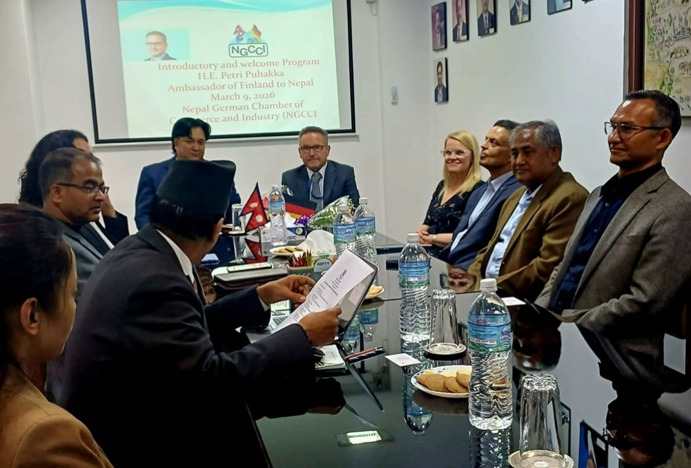 काठमाडौं । फिनल्याण्ड दूतावास, नेपाल र नेपाल जर्मन चेम्बर अफ कमर्स एन्ड इन्डष्ट्रि एनजीसीसीआईबीचको बैठकमा नेपाल र फिनल्याण्ड तथा अन्य युरोपेली संघका सदस्य राष्ट्रहरूबीच व्यापार र आर्थिक सहकार्यलाई प्रवर्द्धन गर्ने अवसरहरूको अन्वेषणबारे छलफल गरिएको छ । बैठकमा नेपाली उत्पादनहरूको युरोपेली बजारमा पहुँच विस्तार गर्न र द्विपक्षीय आर्थिक संलग्नतालाई सुदृढ बनाउन ट्रेडिङ हब स्थापना गर्ने विषयमा पनि छलफल भएको थियो ।