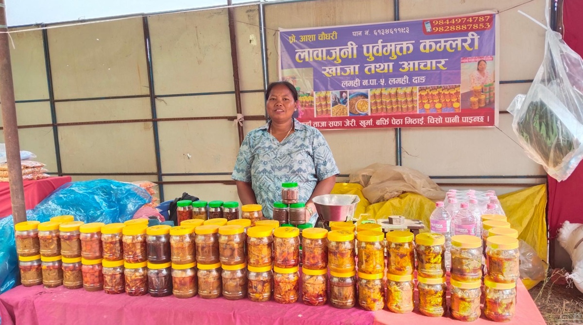 घोराही (दाङ) । लमही नगरपालिका–५ लमहीका आशारानी चौधरीको मुख्य पेसा अचार व्यवसाय हो । उनी अहिले अचार बिक्रीका लागि घोराहीमा जारी लुम्बिनी प्रदेशस्तरीय महोत्सवमा आएकी हुन् ।