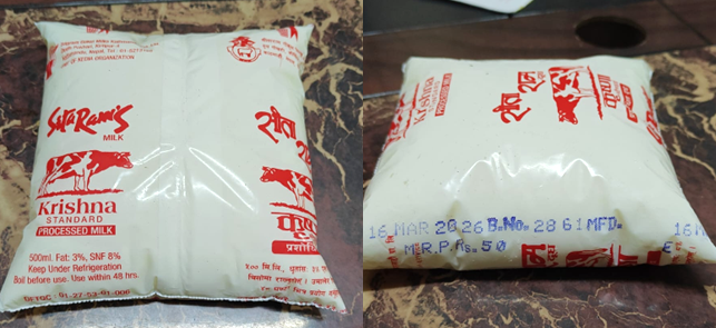 सीताराम ब्राण्डको १० हजार ३ सय ८० पोका दूधको बिक्रीमा रोक्का