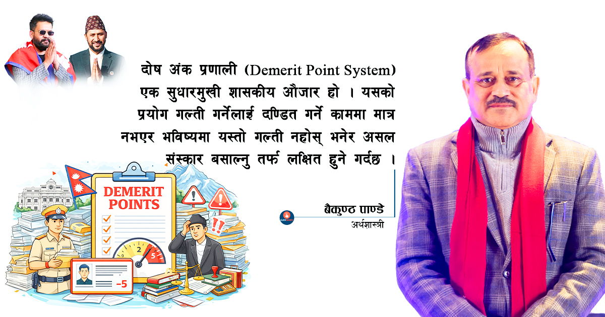 तर सुशासनको स्तरमा निकै पछाडि रहेको हाम्रो सार्वजनिक प्रशासन र राजनीतिक जीवनमा यो दोष अंक प्रणाली लागू गर्न निकै मेहेनत गर्नुपर्ने हुन्छ । सोसल मिडियाको सशक्त भूमिकाको कारण ठूला राजनीतिक दलहरूमा दोष अंकको अभिलेखले सीमा नाघेपछि सचेत नेपाली जनताले आम निर्वाचनमार्फत उनीहरूको दुर्दशा गराएका छन् । विडम्बना, उनीहरू यसलाई स्वीकार्न नसकेर ‘विदेशीको हात’ भन्दै अझ दोष अंक बटुलिरहेका छन् र आफू कहिल्यै नसुध्रने जीव भएको प्रमाण पेस गरिरहेका छन् ।