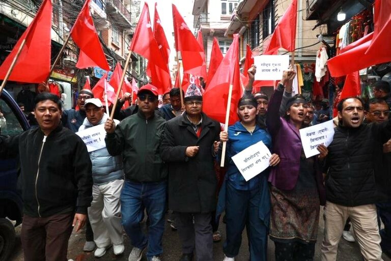 काठमाडौं । एमालेले अध्यक्ष केपी शर्मा ओली पक्राउको विरोधमा संघीय राजधानी काठमाडौंमा प्रदर्शन सुरू गरेको छ ।