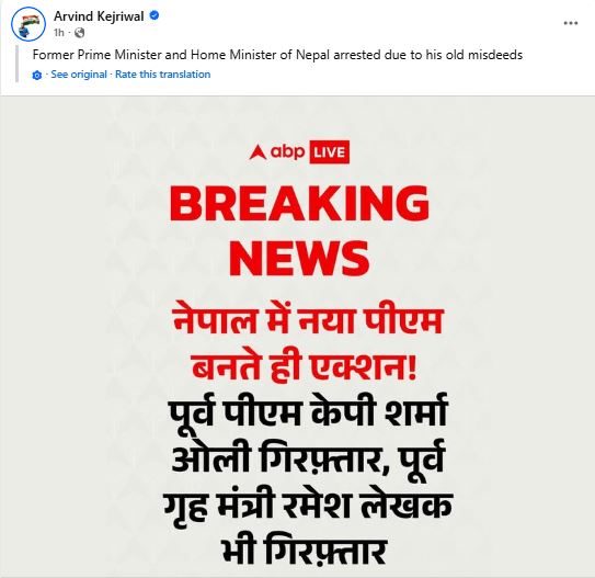 सामाजिक सञ्जालमा एबीपी न्युजको समाचार सेयर गर्दै उनले यस्तो दाबी गरेका हुन् ।