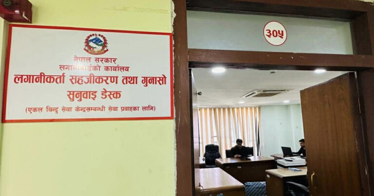 काठमाडौं । लगानी बोर्ड नेपालले लगानीकर्ता सहजीकरण तथा गुनासो सुनुवाइ डेस्क स्थापना गरेको छ । एकल बिन्दु सेवा केन्द्र सञ्चालनसम्बन्धी सेवा प्रवाहका लागि सुनुवाइ डेस्क स्थापना गरेको हो ।
