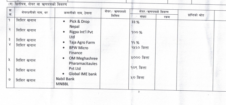 साथै उनको विभिन्न कम्पनीमा लगानीसमेत रहेको छ ।