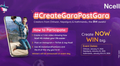 काठमाडौं । एनसेलले नेपालका तीन सहरमा ‘क्रिएटर्स मेला’ आयोजना गर्न नेपालस्थित अमेरिकी दूतावाससँग सहकार्य गरेको