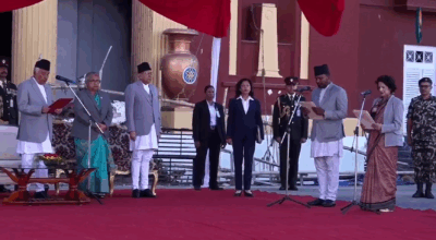 काठमाडौं । मन्त्रिपरिषद्का दुई नयाँ सदस्यले शपथ लिँदैछन् । नवनियुक्त मन्त्रीहरू डा. सुधा शर्मा र