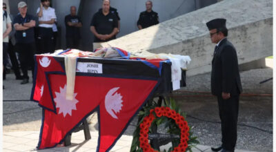 काठमाडौं । इजरायलमा मारिएका नेपाली युवा विपिन जोशीको शव सोमबार काठमाडौं ल्याइएको छ । त्रिभुवन