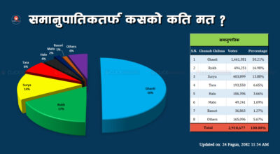 काडमाडौं । प्रतिनिधिसभा सदस्य निर्वाचनको मतपरिणाम सार्वजनिक हुँदै गर्दा हालसम्म समानुपातिकतर्फ रास्वपाले ५० प्रतिशत मत