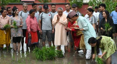 काठमाडौं । धान दिवसका उपलक्ष्यमा राष्ट्रपति भवनमा रोपाइँ गरिएको छ । राष्ट्रपति कार्यालयद्वारा आयोजित रोपाइँमा