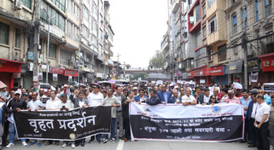 काठमाडौं । सुनचाँदी गहनामा सरकारले २ प्रतिशत विलासिता कर लगाएको विरोधमा सुनचाँदी व्यवसायीहरूले काठमाडौंको न्यूरोड
