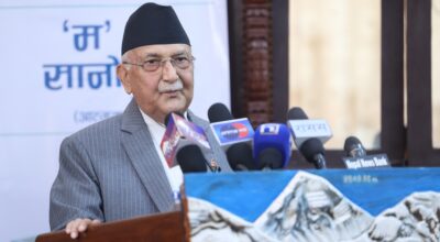 काठमाडौं । प्रधानमन्त्री केपी शर्मा ओलीले मुलुकका अन्धकार कुनै एक व्यक्तिका कारणमात्रै नहटेको टिप्पणी गरेका