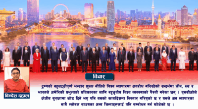 काठमाडौं । आगामी साता चीनका थ्यानचिन शहरमा शाङ्हाई कोअपरेशन अर्गनाइजेशन अर्थात् एससीओको शिखर बैठक आयोजना