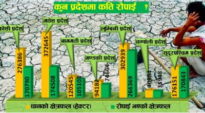 काठमाडौं । साउनको पहिलो साता सक्न लाग्दा मधेश प्रदेशको आठ जिल्लामा जम्मा ४६.८३ प्रतिशत मात्रै